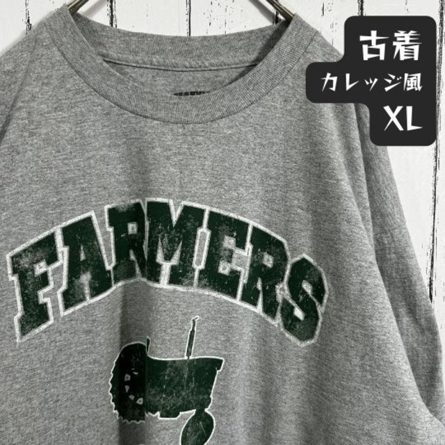 メッセージ カレッジ風デザイン ファーマー 古着 Tシャツ XL グレー