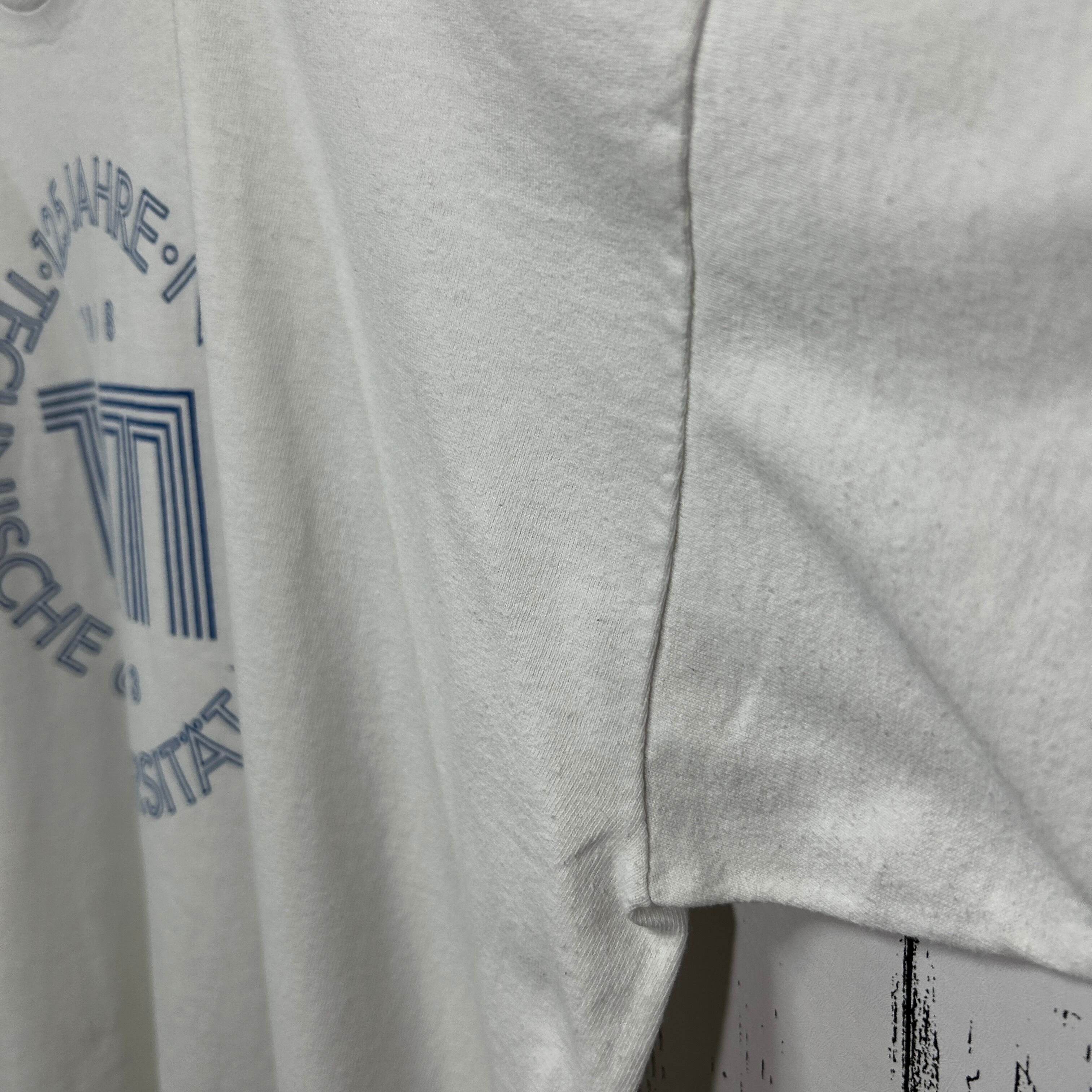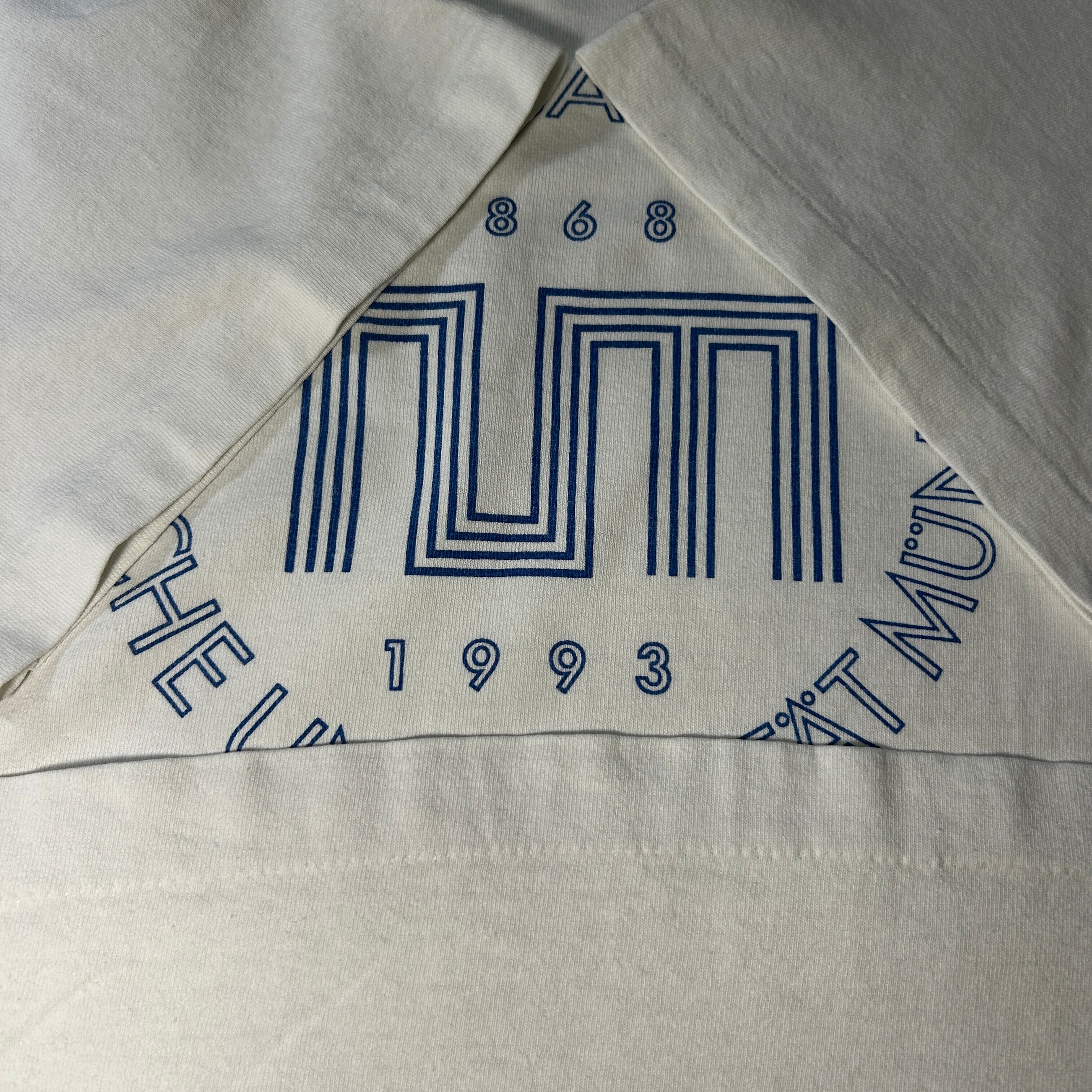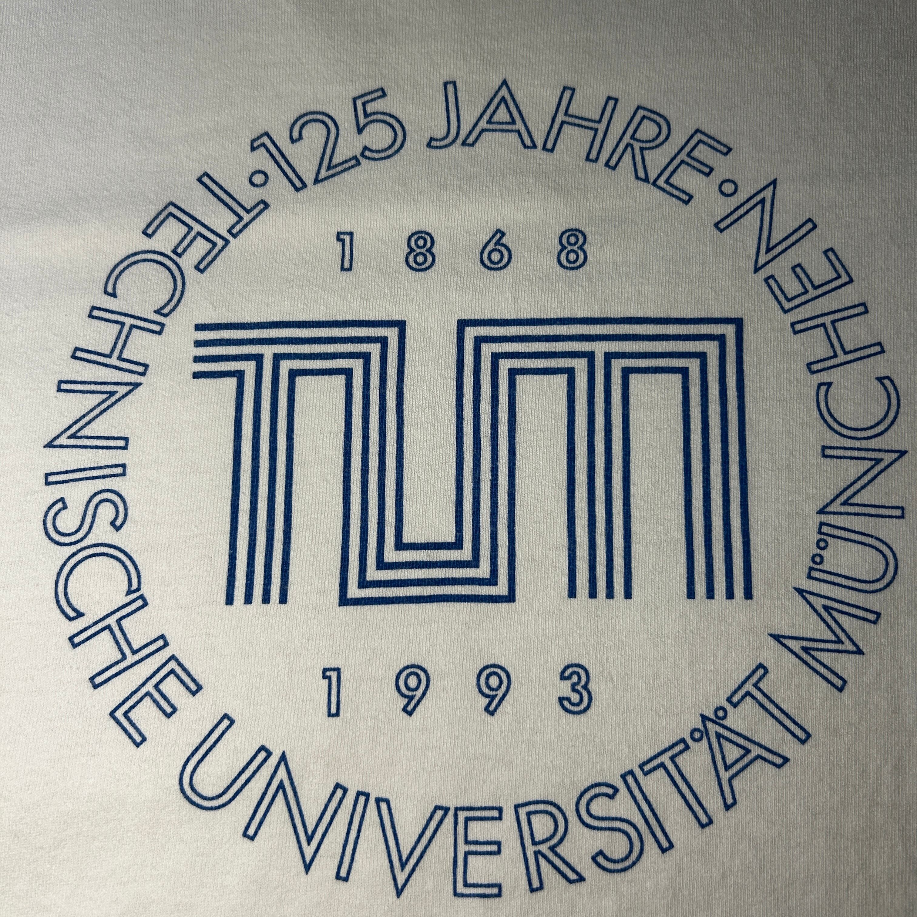 90年代のカレッジスタイルが魅力的で、ドイツ・ミュンヘン工科大学の125周年を記念してデザインされたレアな古着Tシャツ。XLサイズでゆったり可愛く着用できます。
