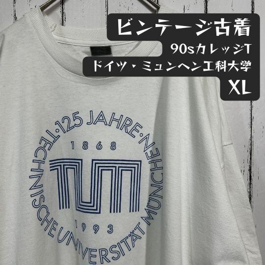 カレッジ 90s ドイツ ミュンヘン大学 古着 Tシャツ XL 白