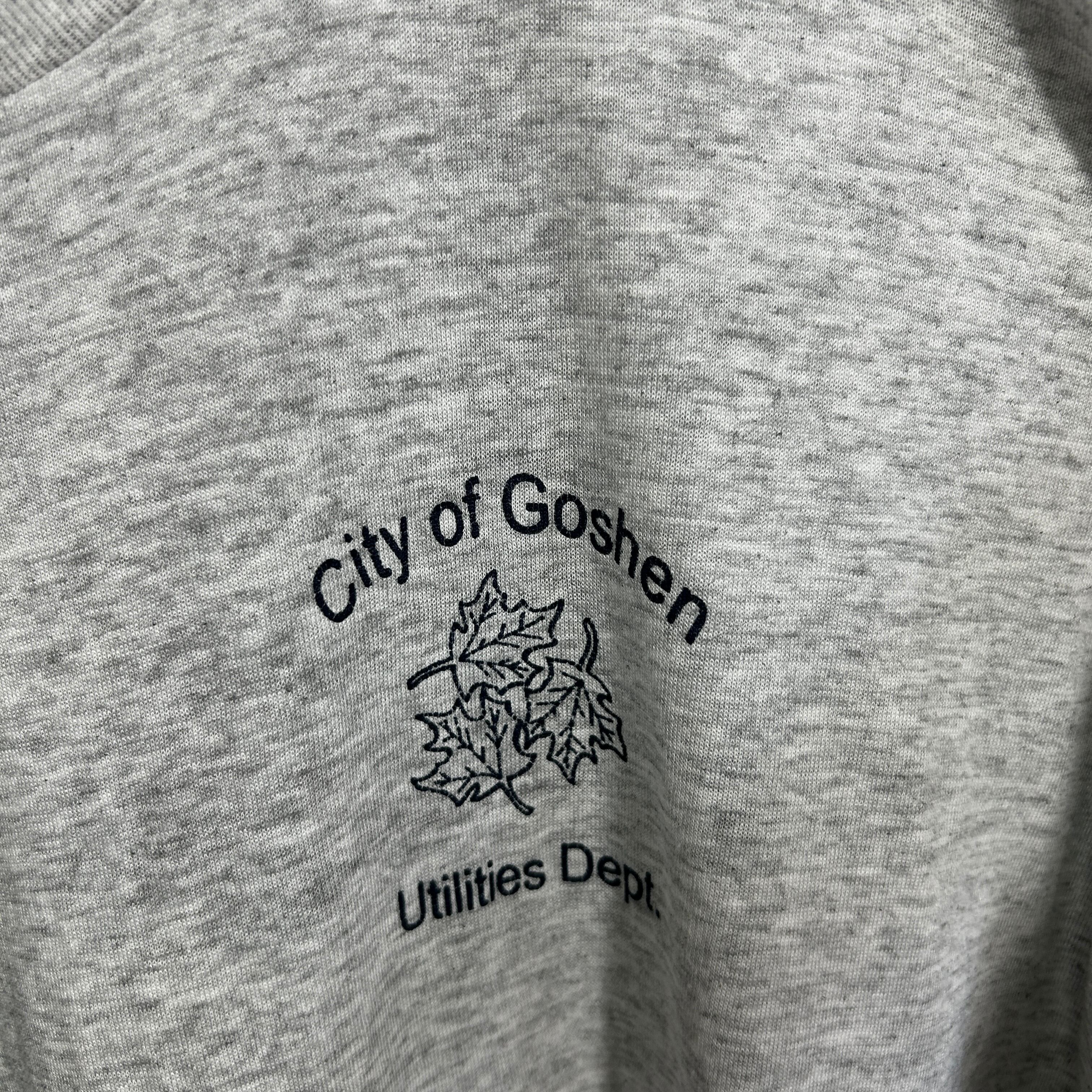 アメリカ合衆国インディアナ州北端部に位置する都市「Goshen(ゴーシェン)」の公共事業プリントが施されたヘインズの古着Tシャツです。