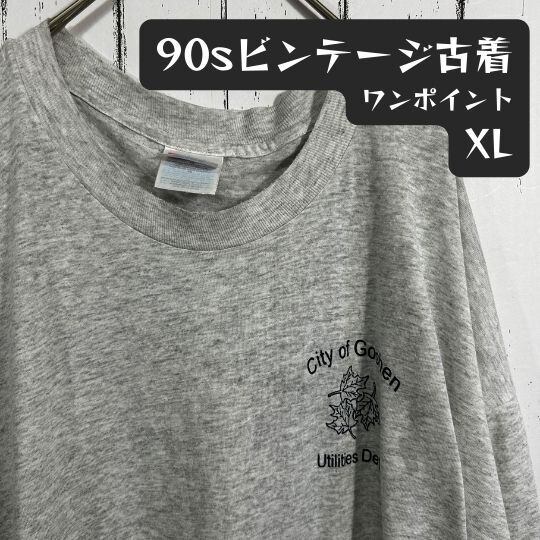 Hanes 90sビンテージ ワンポイント 古着 Tシャツ XL ライトグレー