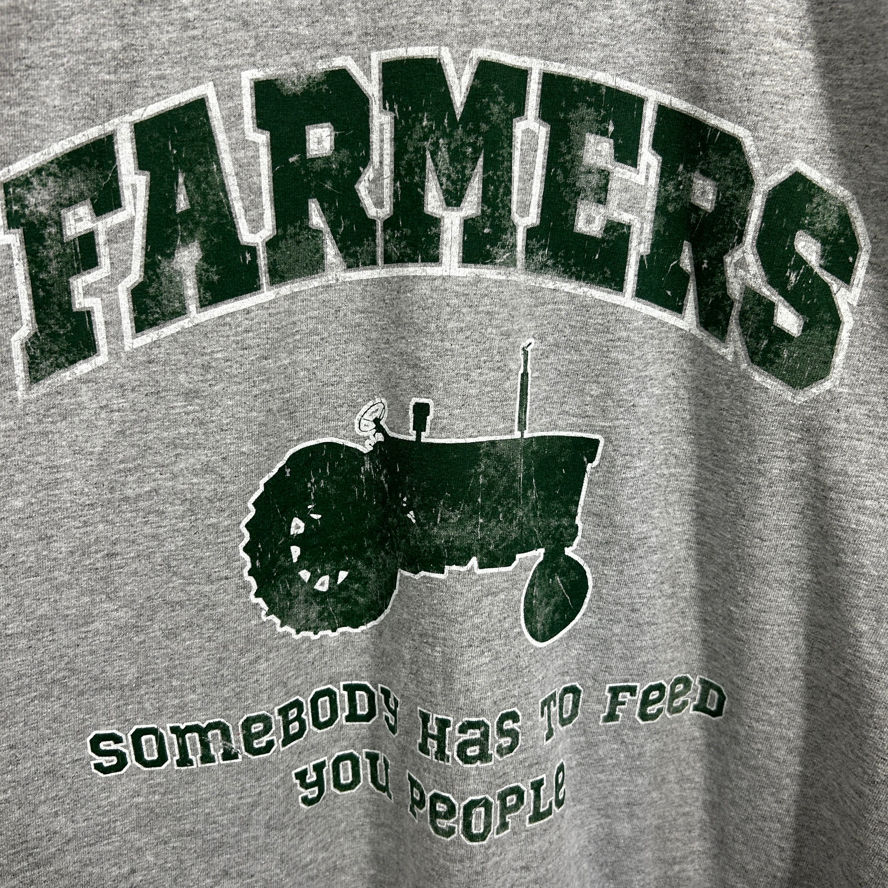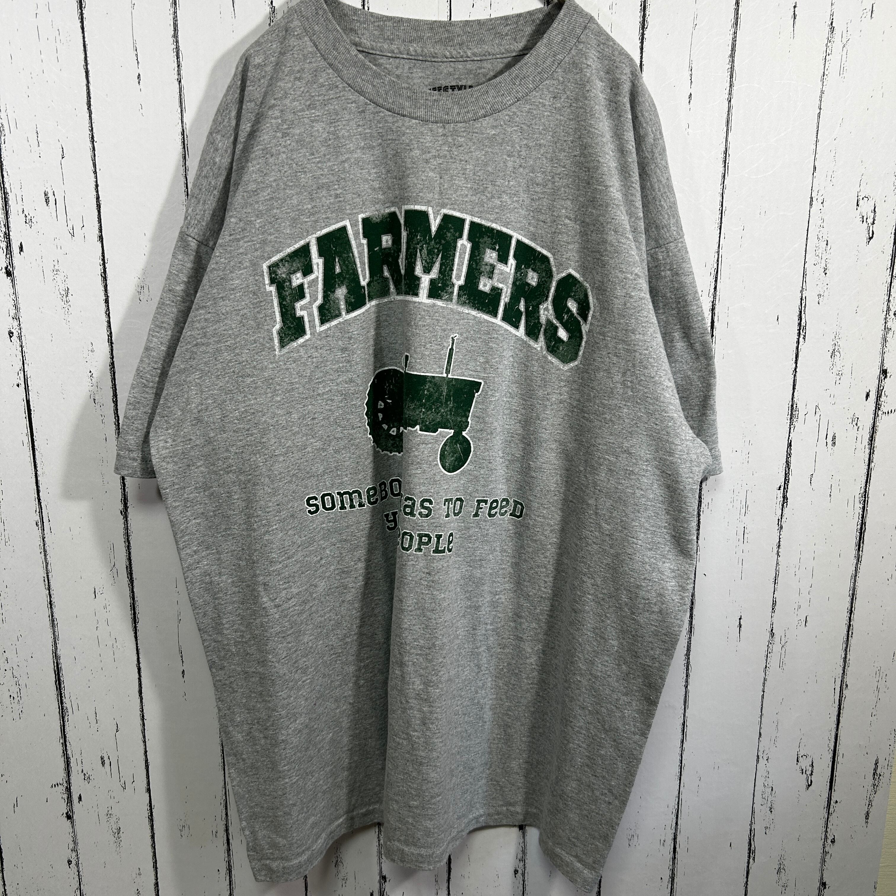 メッセージ カレッジ風デザイン ファーマー 古着 Tシャツ XL グレー