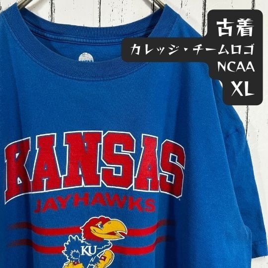 カレッジ チームロゴ カンザス NCAA 古着 Tシャツ XL ブルー