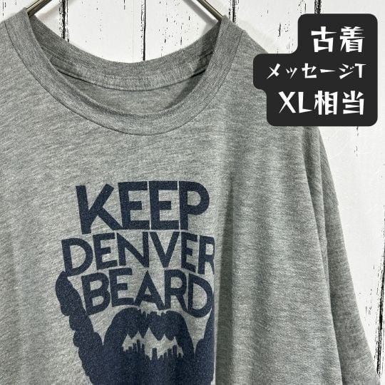 メッセージ KEEP DENVER BEARD 古着 Tシャツ グレー XL相当