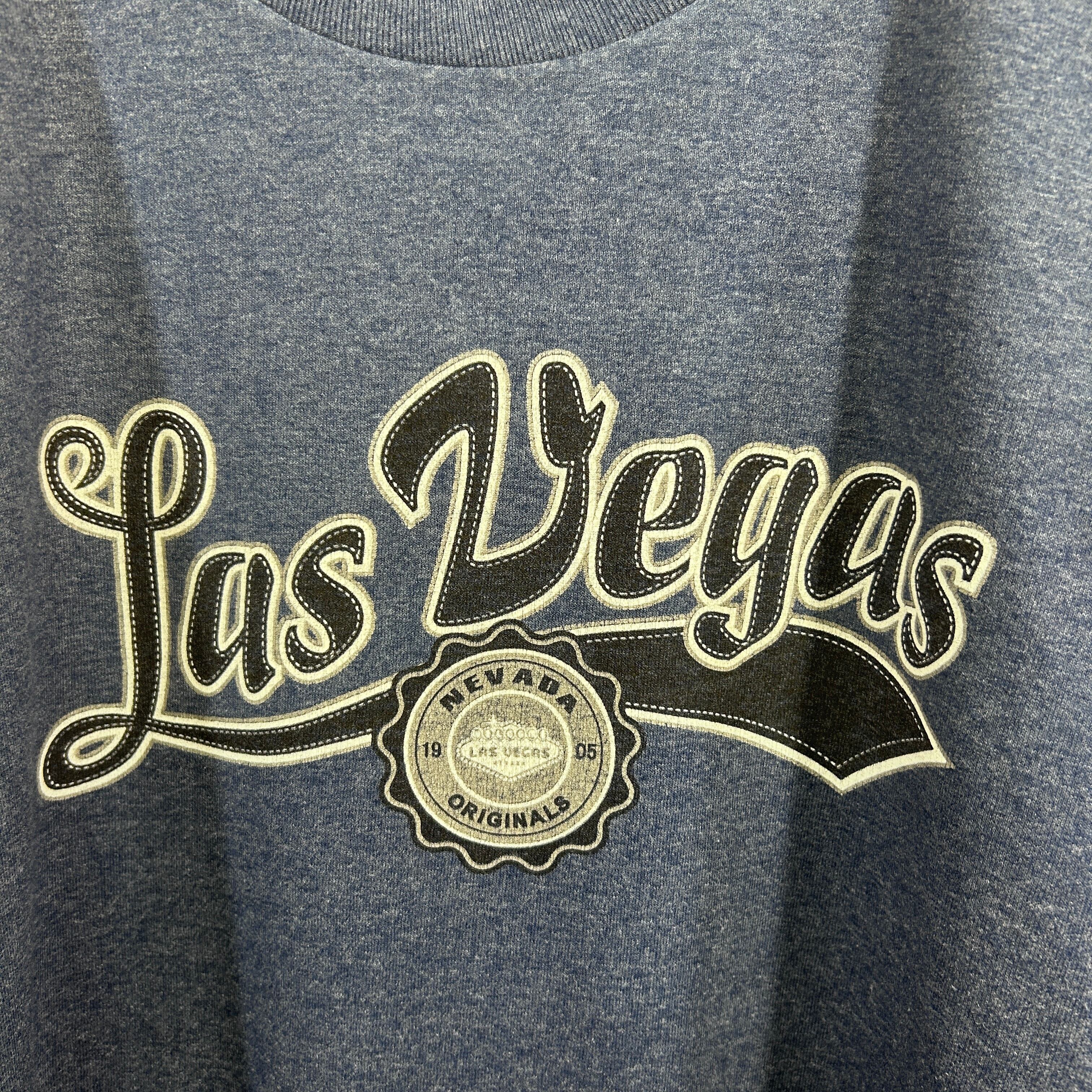 『クラシックなカレッジ風デザインで、フロントに大きく「Las Vegas」とプリントされた古着Tシャツです。スポーツチームのユニフォームを思わせる力強いフォントが印象的で、シンプルながら存在感のある一枚。デニムやショーツと合わせてアメカジスタイルに、またストリートコーデのアクセントにもおすすめです。古着ならではの味わいが楽しめる一点ものです』