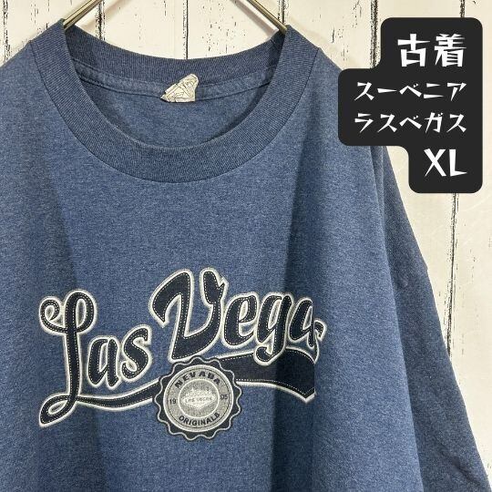 スーベニア カレッジ風 ラスベガス 古着 Tシャツ XL ネイビー