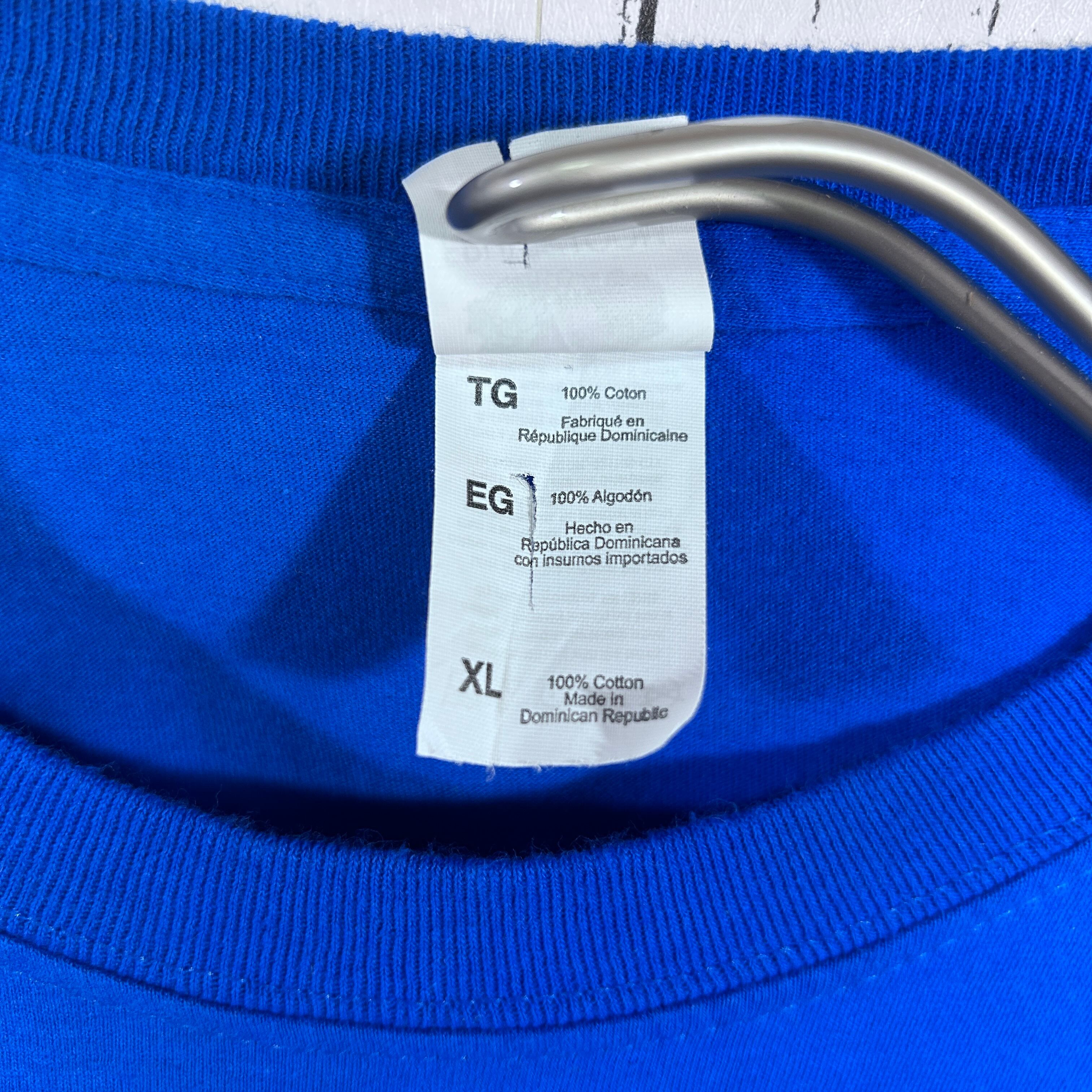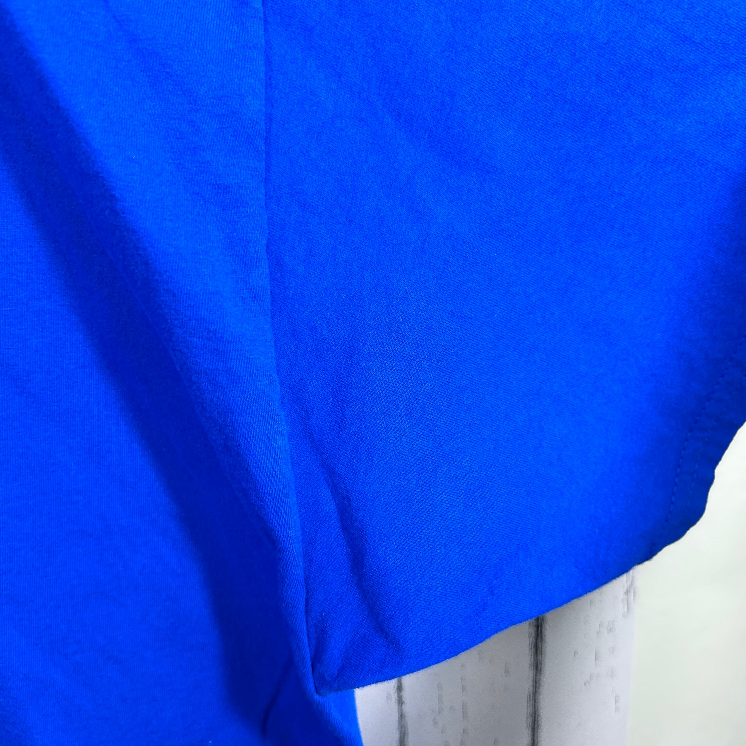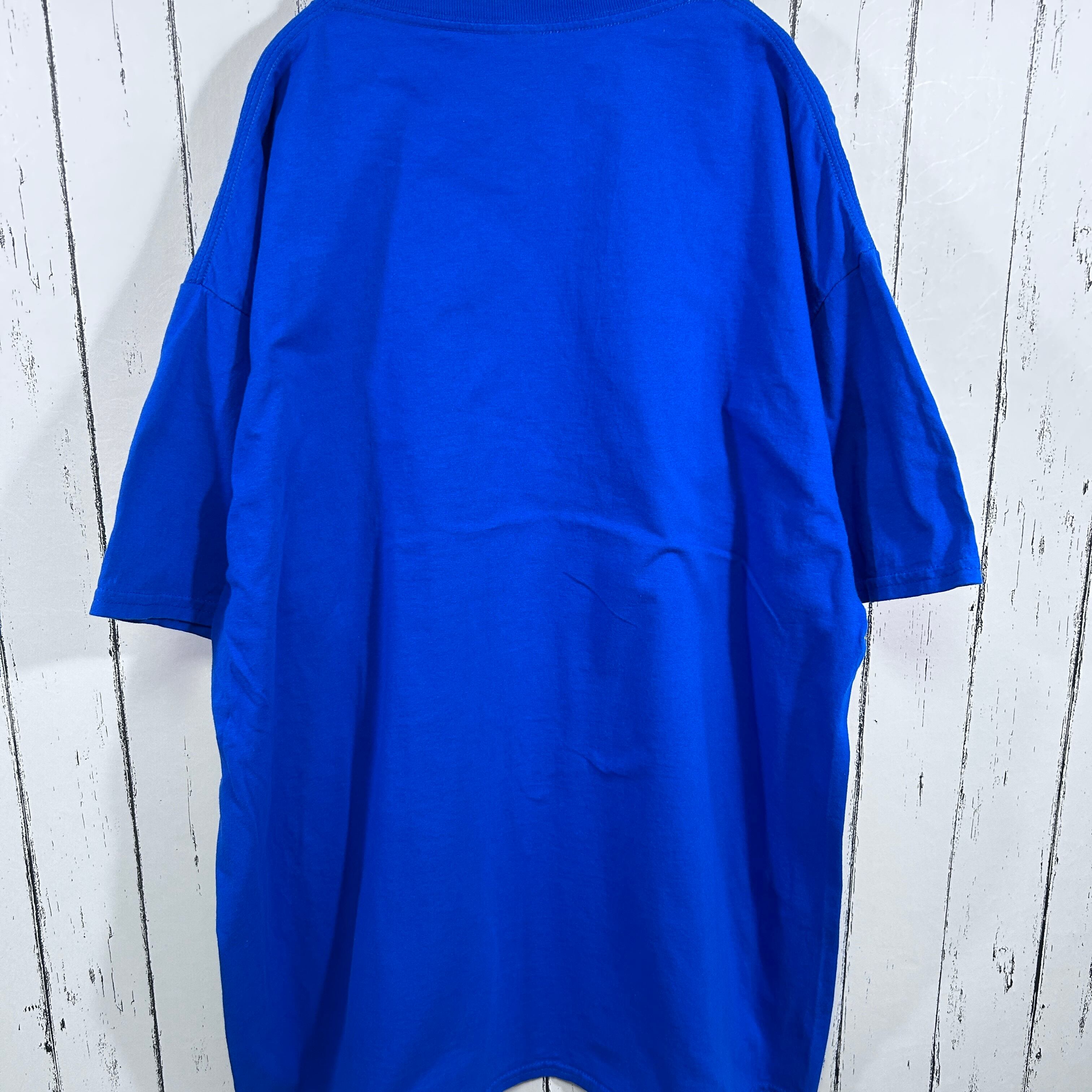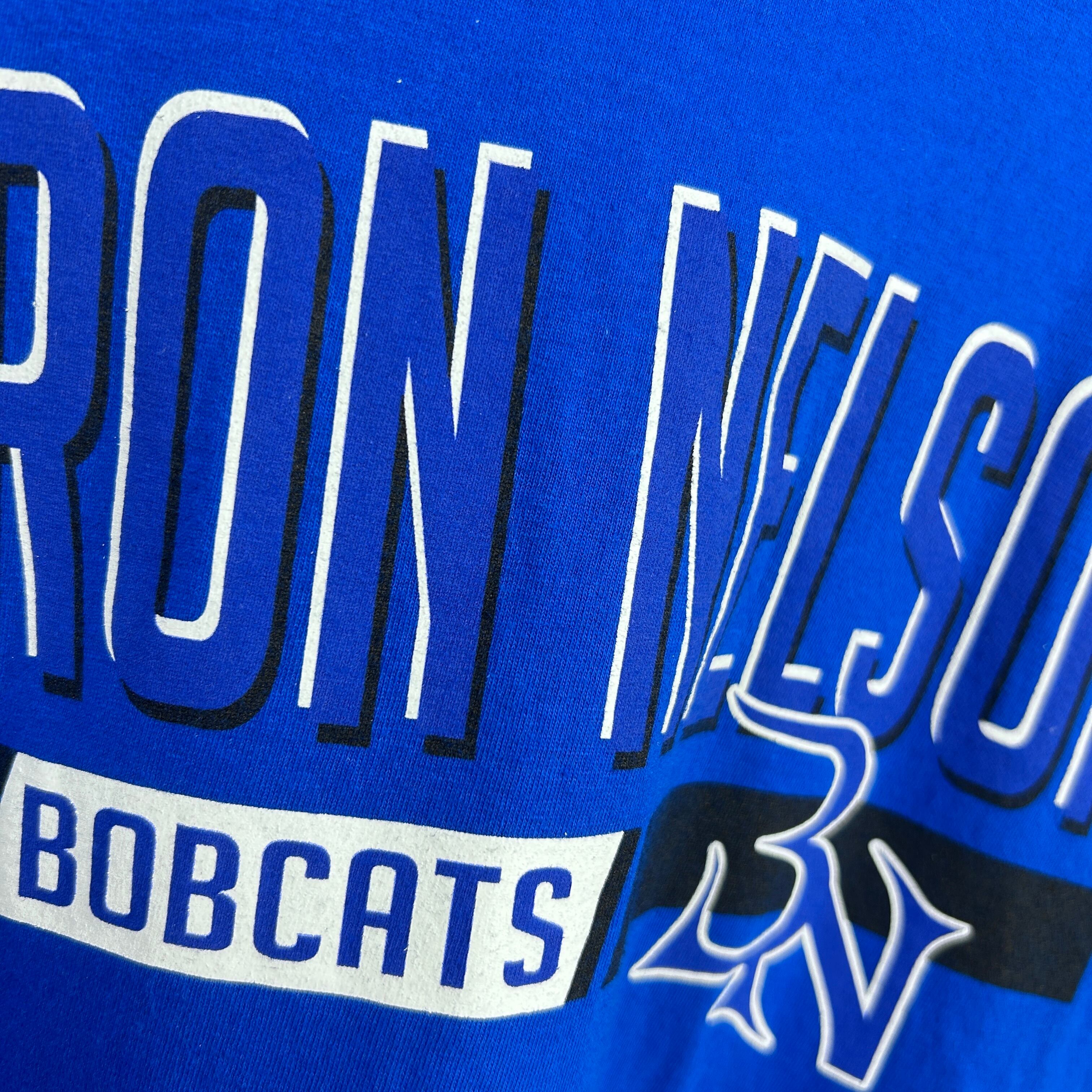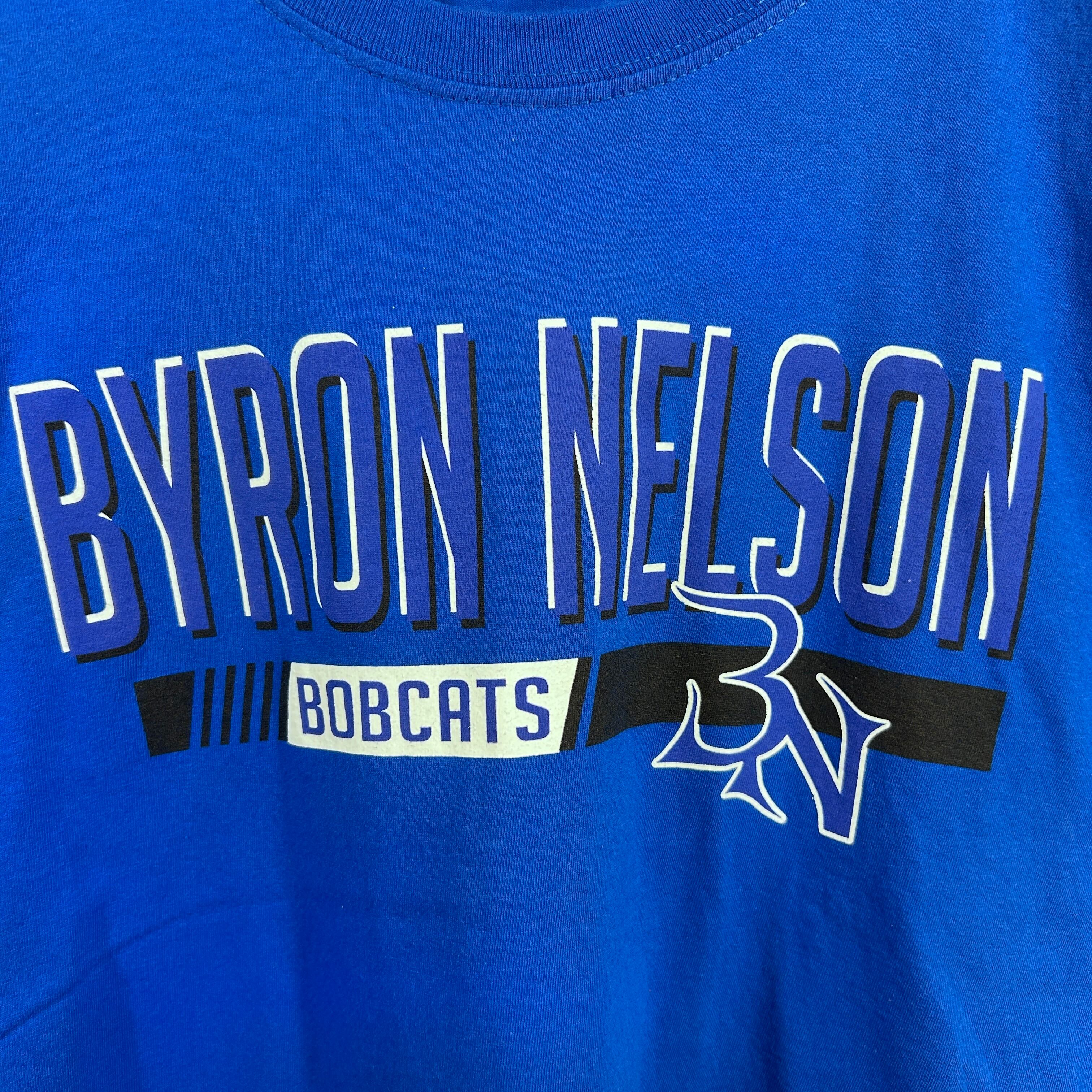 『鮮やかなブルーのボディに「BYRON NELSON BOBCATS」のプリントが施された古着Tシャツです。アメリカのスクールチームらしい力強いデザインで、スポーツやカレッジカルチャーを感じさせる一枚。シンプルながら存在感があり、アメカジやストリートスタイルのアクセントにもぴったり。古着ならではの雰囲気を楽しめるおすすめのアイテムです!』