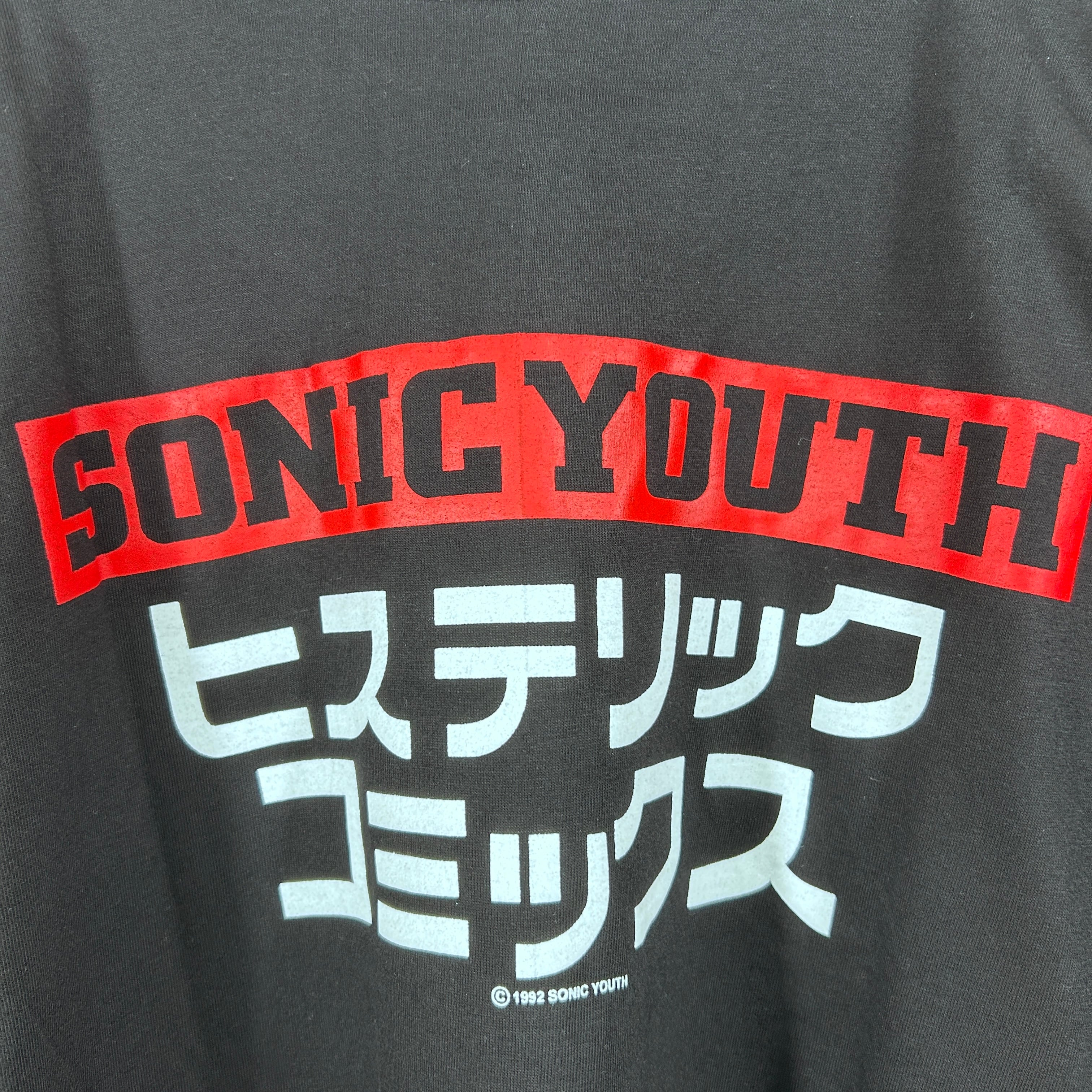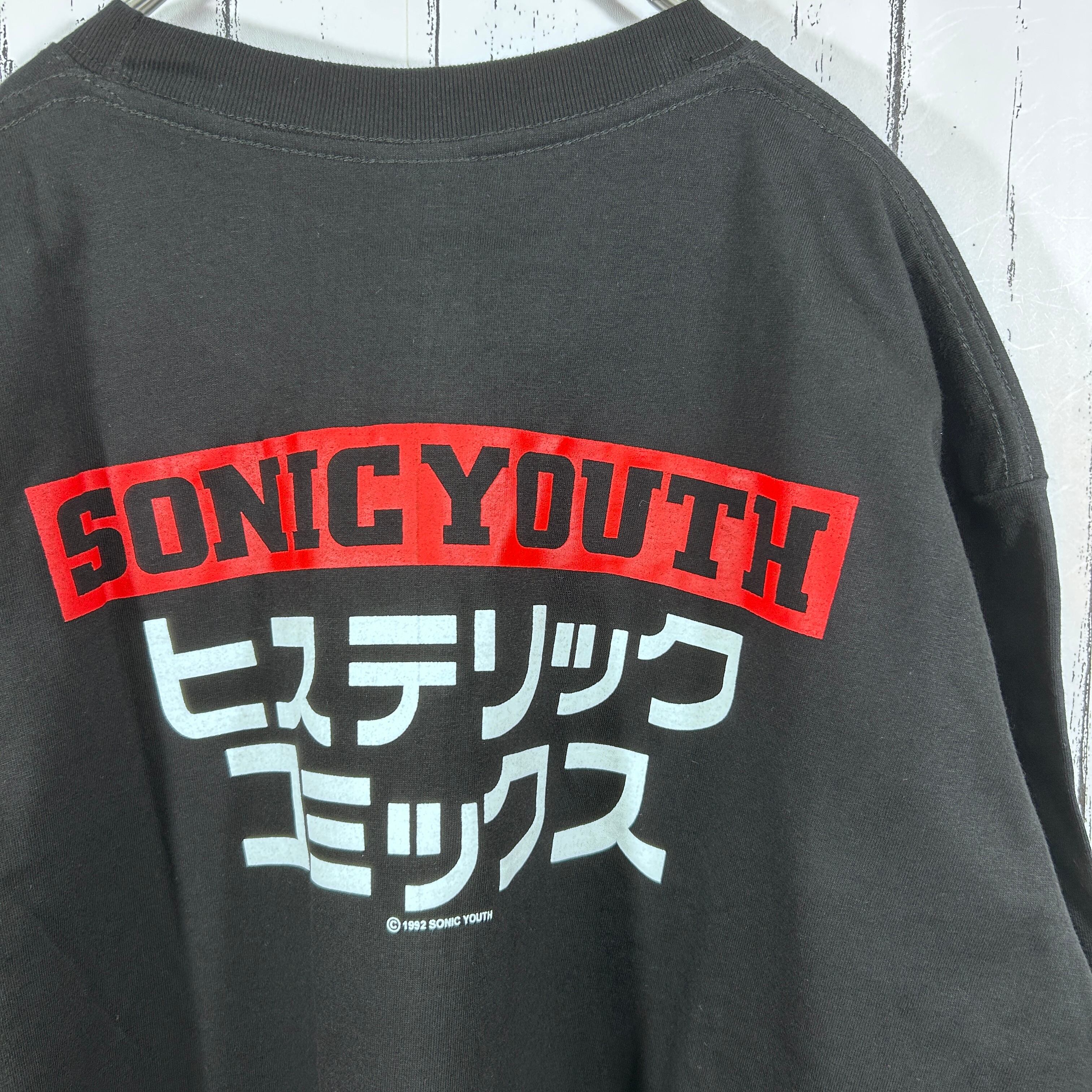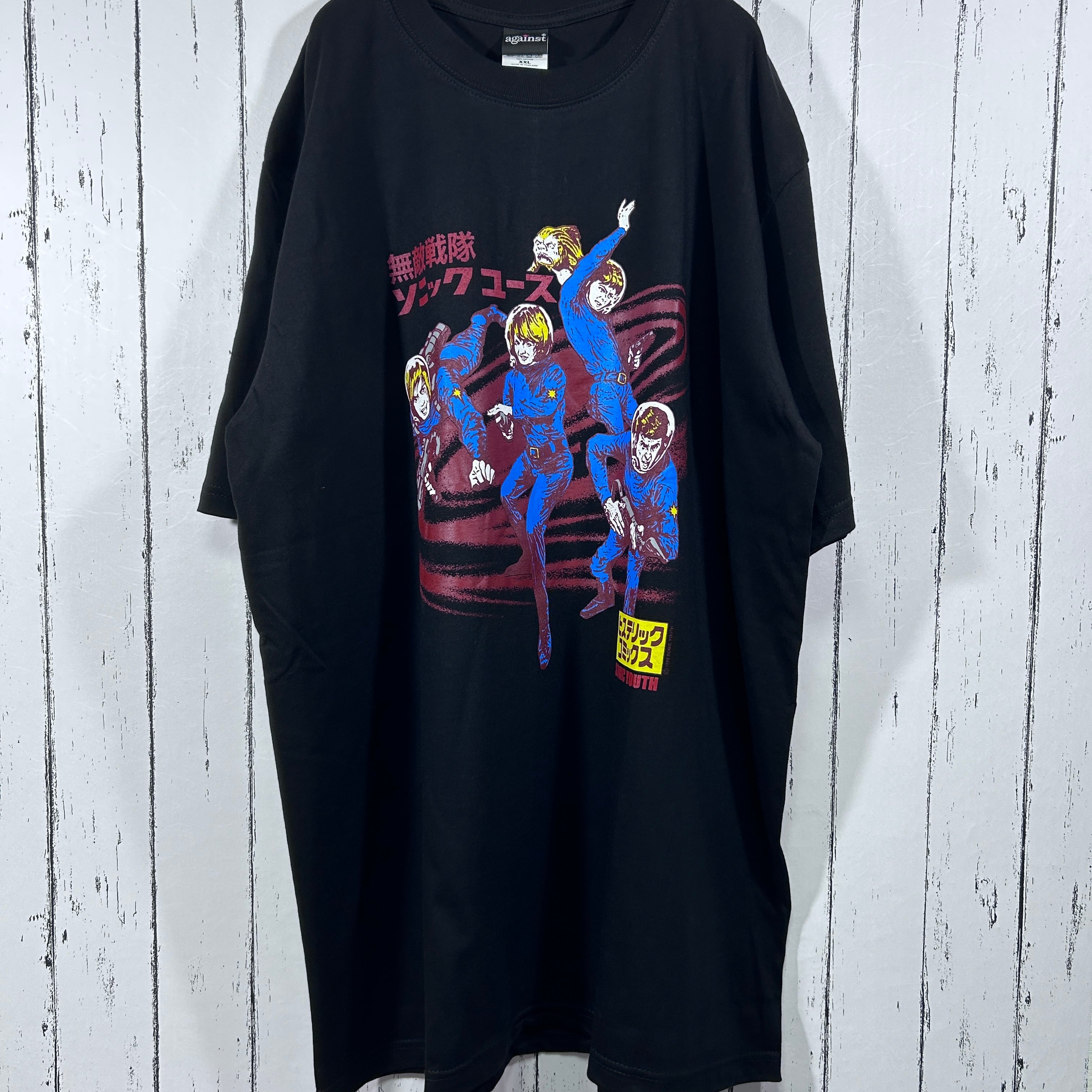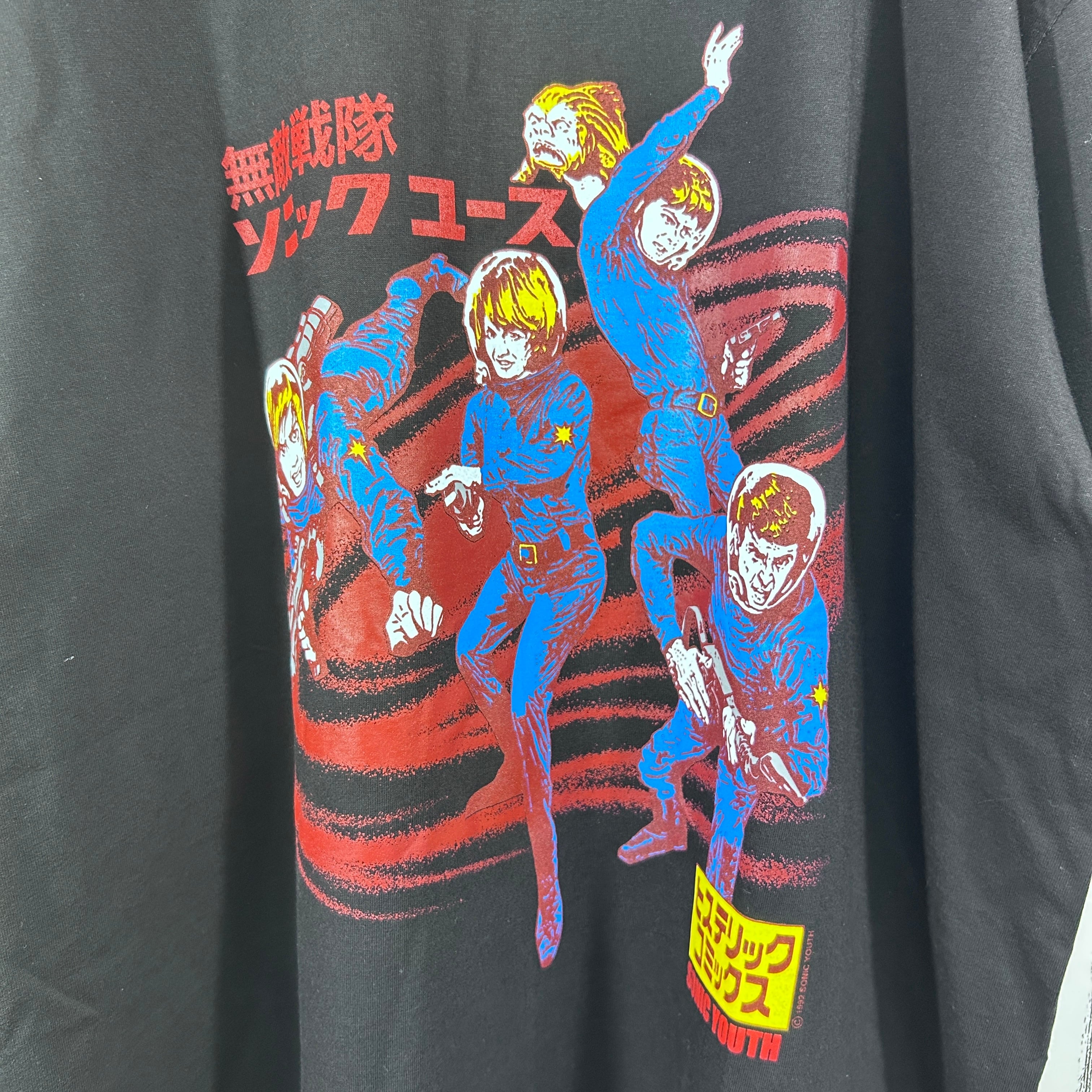 『後のグランジ、オルタナティヴ・ロックムーヴメントへ大きな影響を与えたアメリカのバンド「Sonic Youth(ソニックユース)」の個性的なデザインを採用したバンドTシャツ。無敵戦隊やヒステリックコミックスなど、漢字やカタカナが使用されたプリントが特徴です』