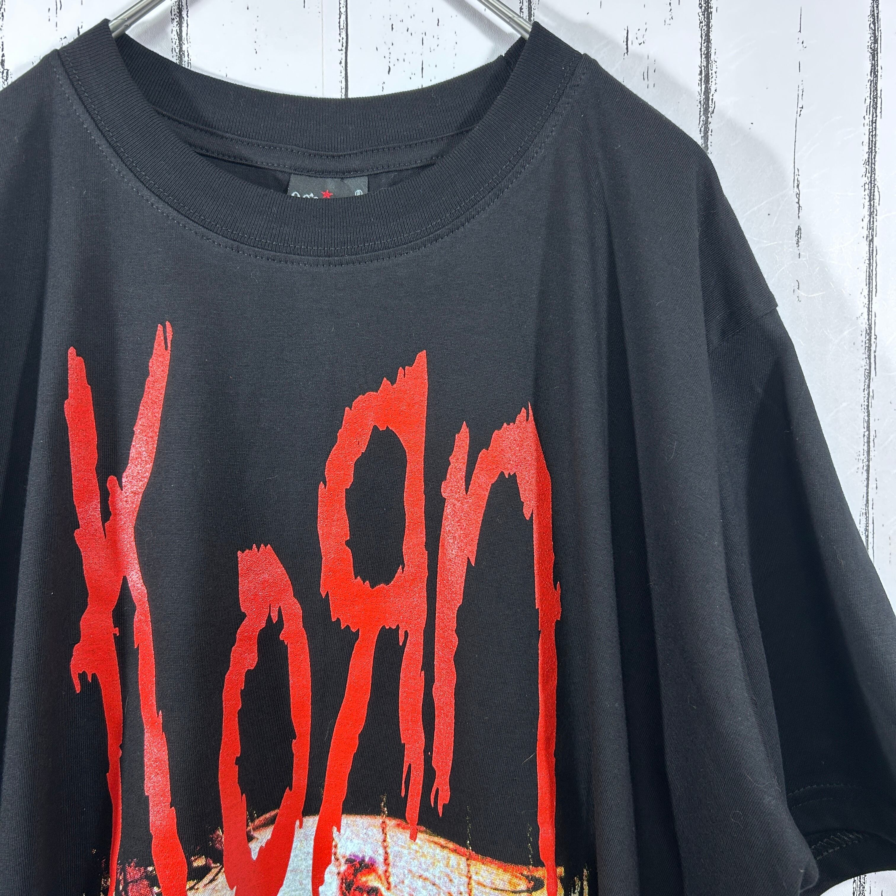 『ヘビメタとヒップホップ的な要素を融合した独特のサウンドで知られる「Korn(コーン)」のブートレグバンドTシャツ。重低音なベースやヘヴィリフを象徴するようなデザインが特徴です』