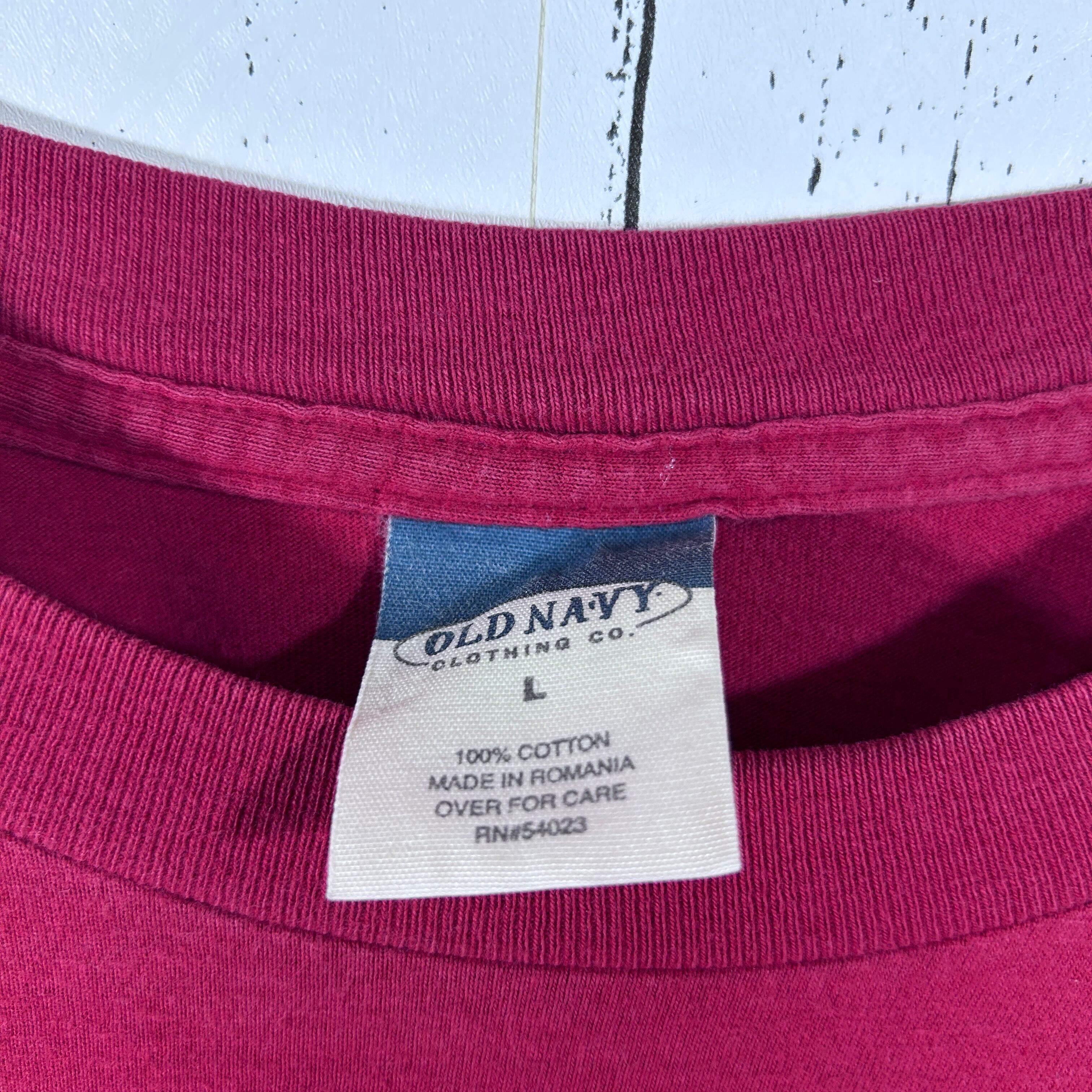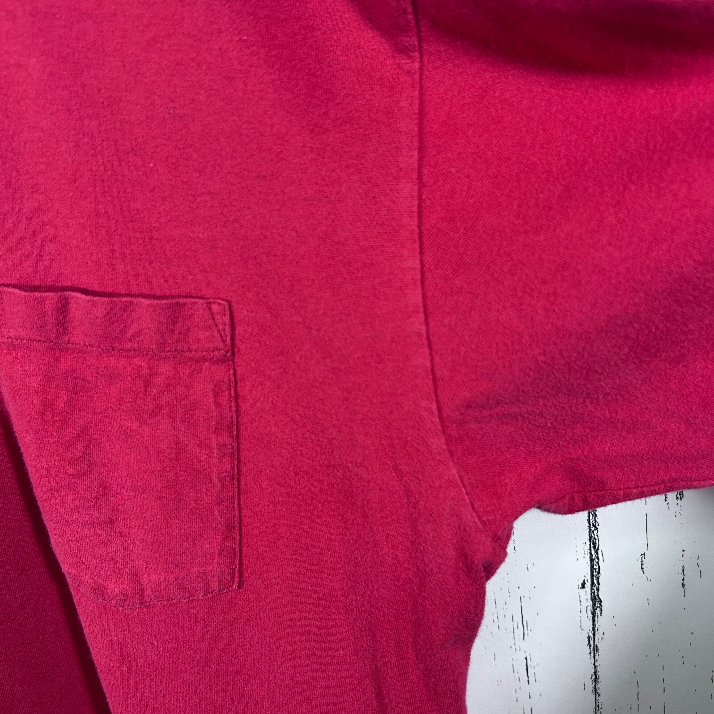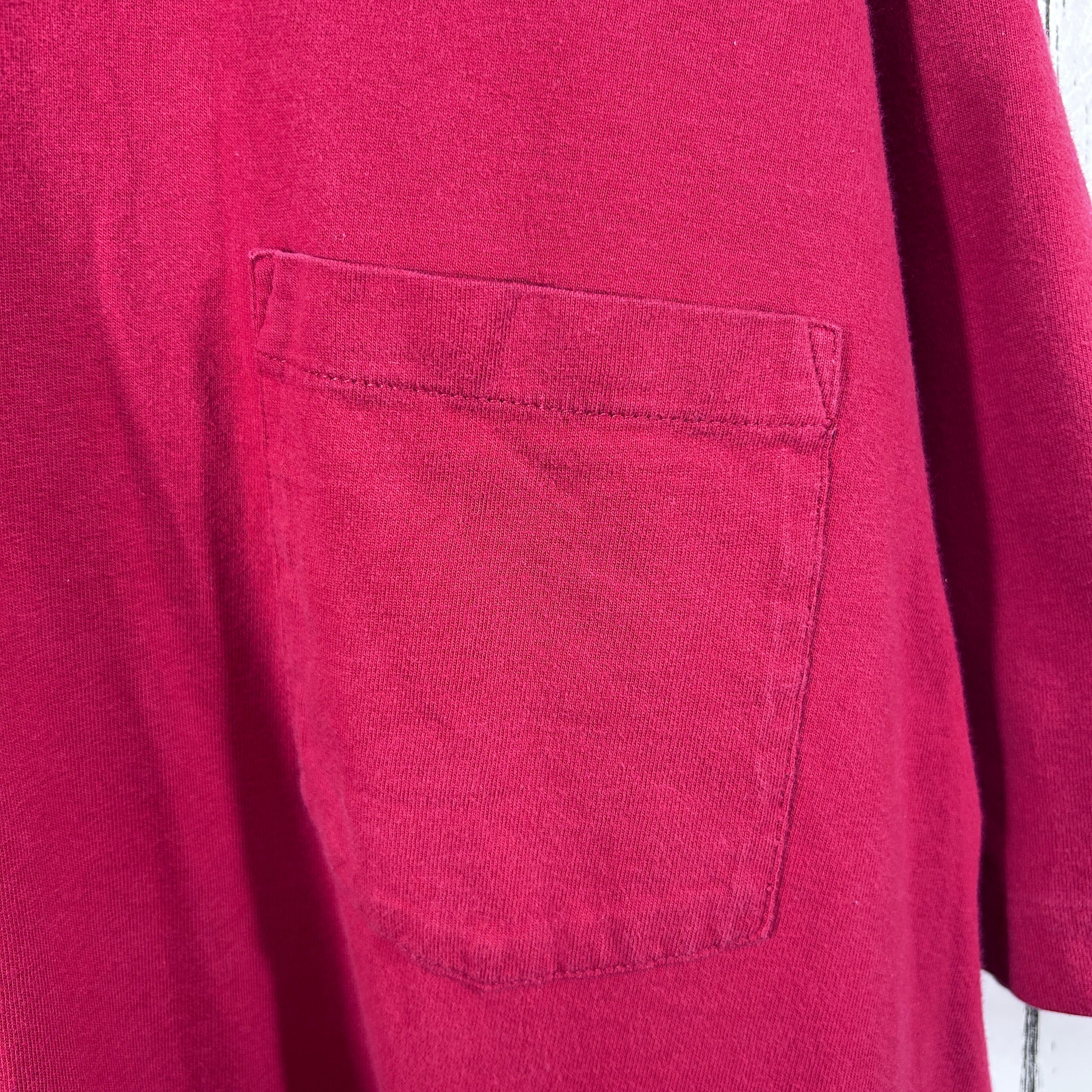 『90年代のOld Navy無地ポケットTシャツ。USA製と比べても希少性が高いMade in Romania製で、裾や袖にはシングルステッチが採用されています。デザインは胸ポケットのみでシンプル。着回ししやすい一枚です。